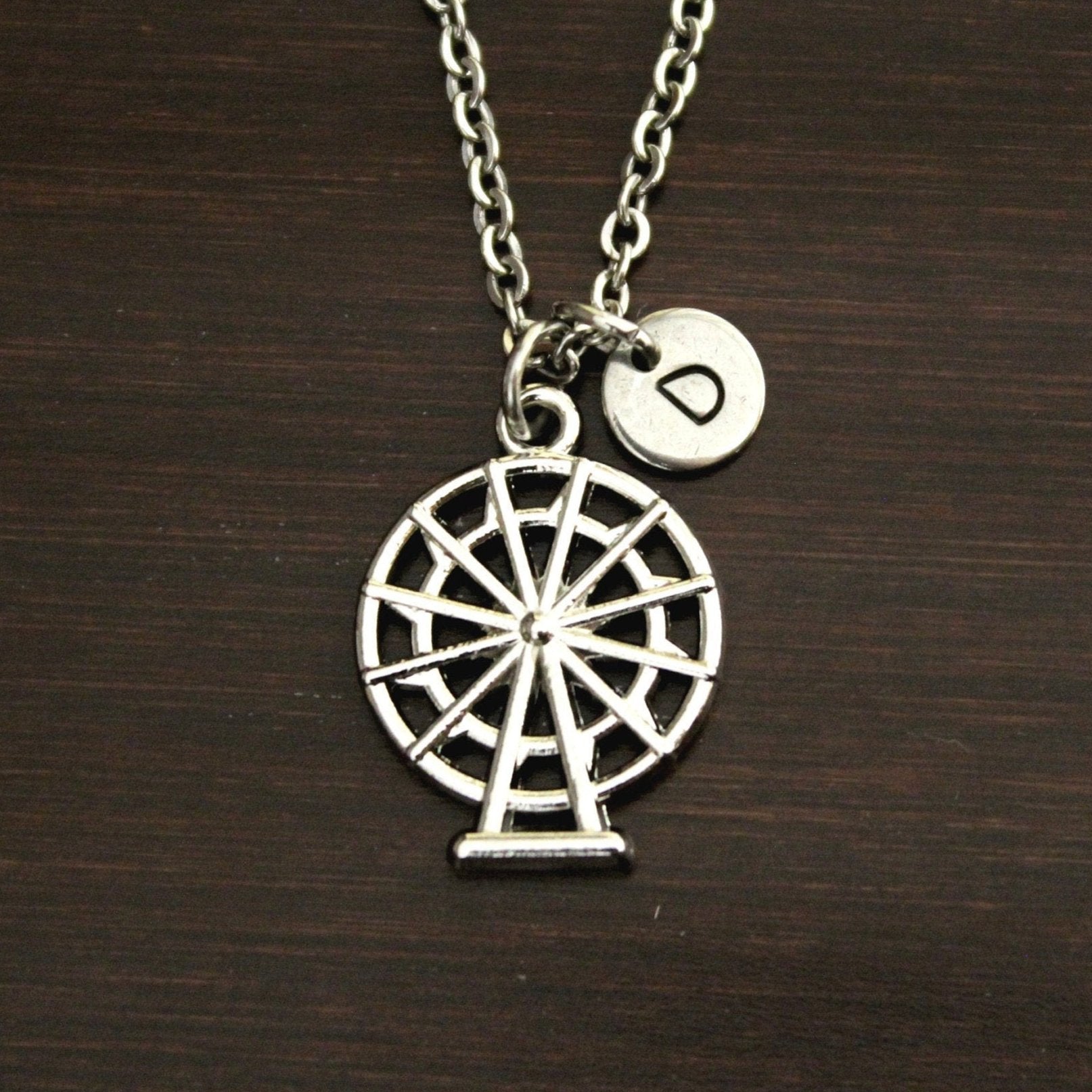 This necklace comes with a ferris wheel charm, choice of a bead, initial or stamped heart and a chain.