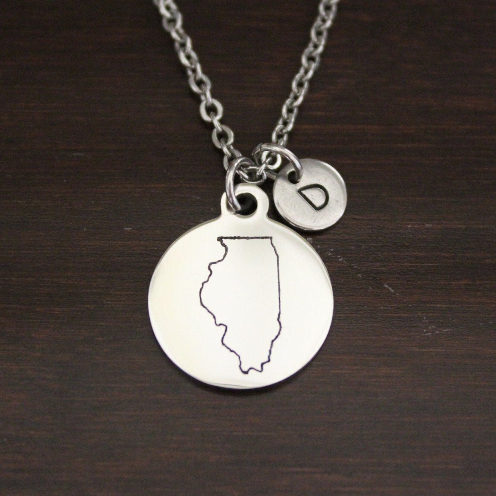 Illinois Necklace - IL Necklace - Illinois Jewelry - IL Jewelry - Illinois Lover-Illinois State-State Necklace-Home Necklace-US State-I/B/H